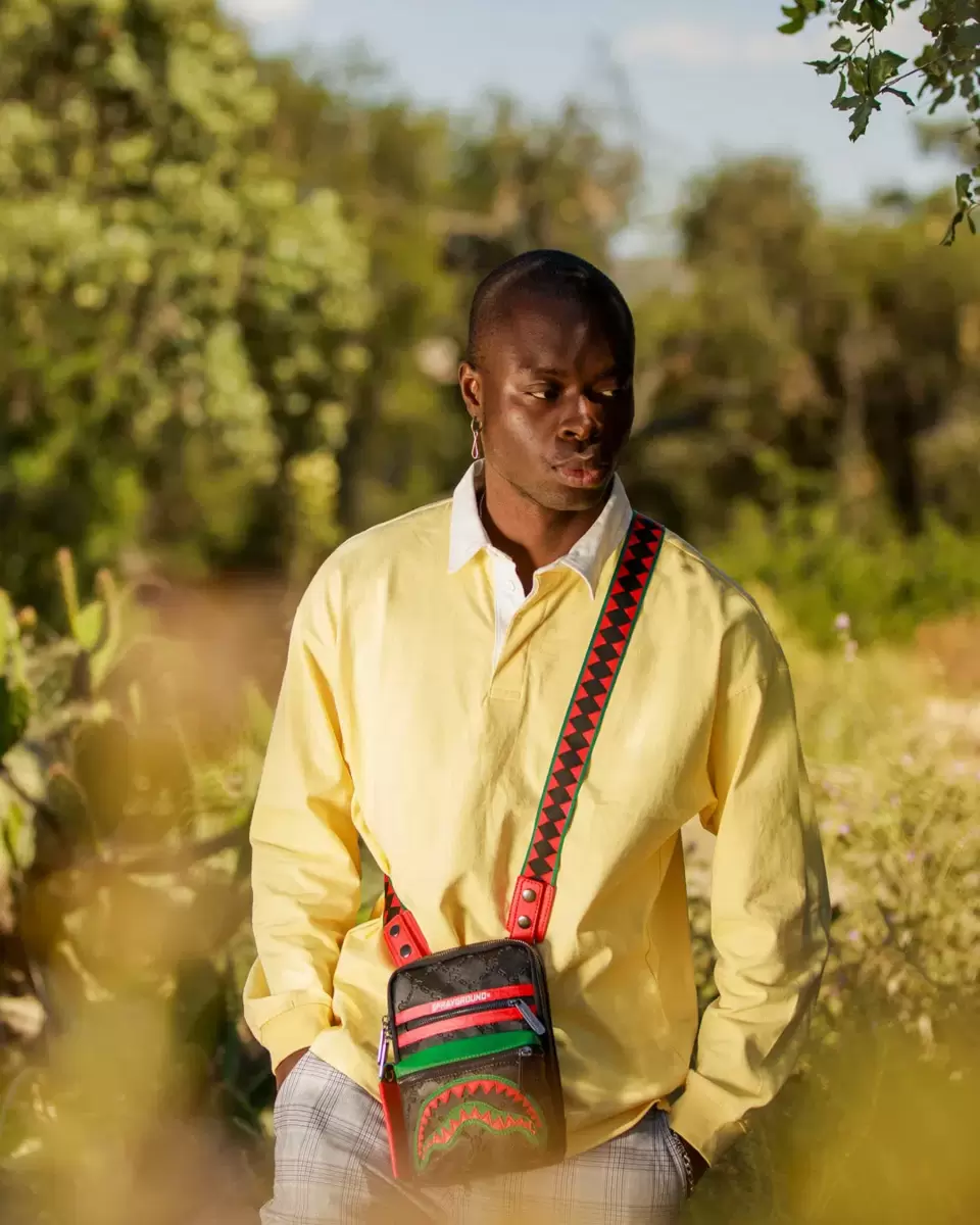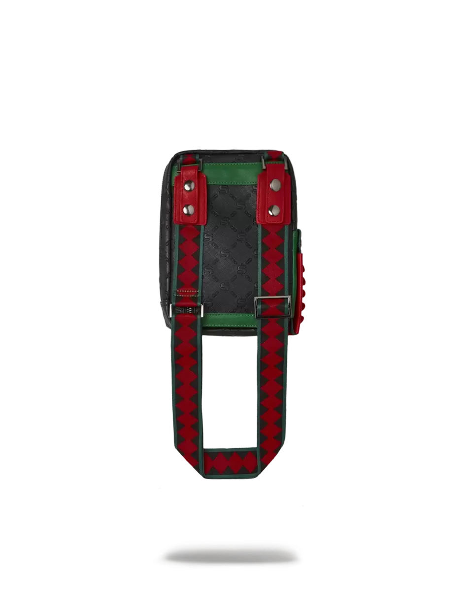 Abmessungen: 23 x 15 x 3 cm Vordertasche mit Reißverschluss Verstellbare, doppelseitige VSM-Riemen für individuelle Anpassung Reißverschlusstasche auf der Rückseite Seitlicher Tragegriff Goldfarbene Reißverschlüsse mit Metallbeschlägen Reißverschlussfach