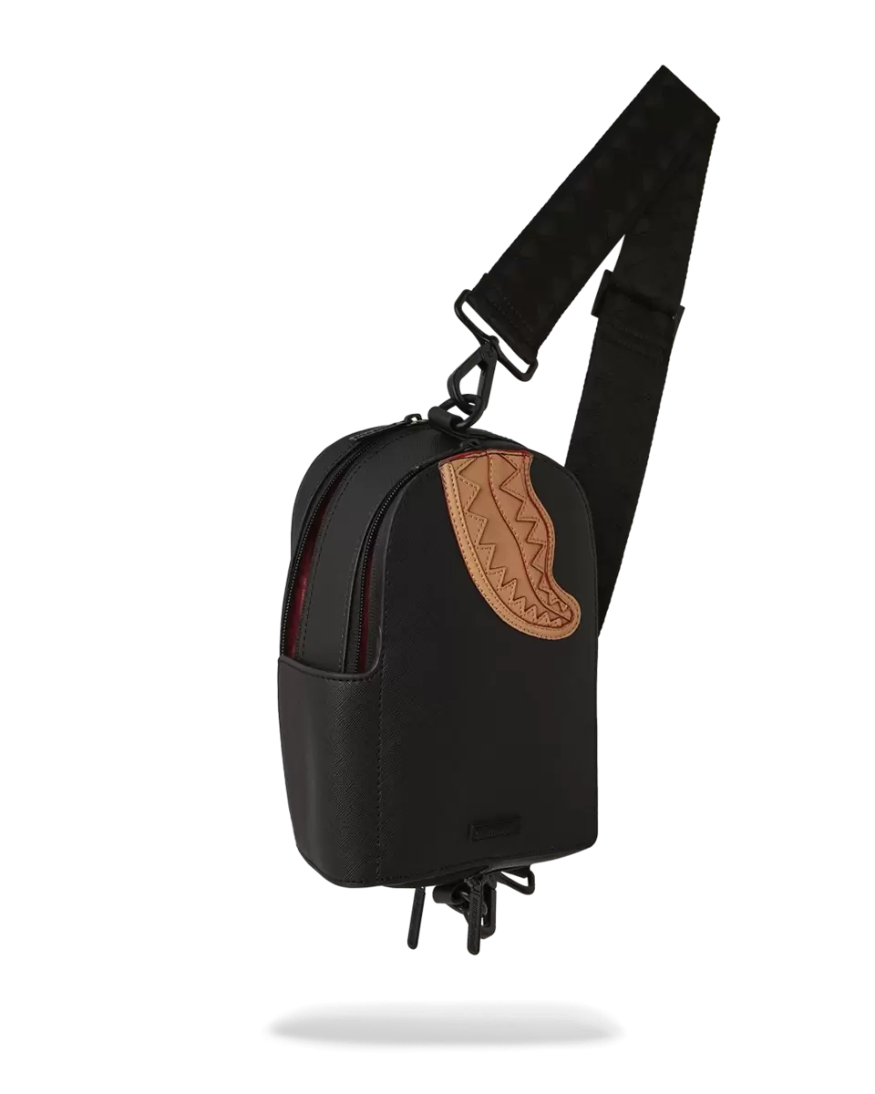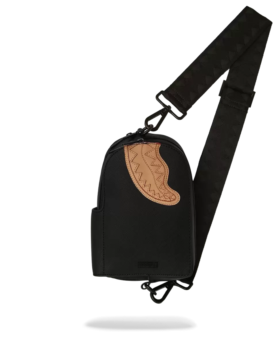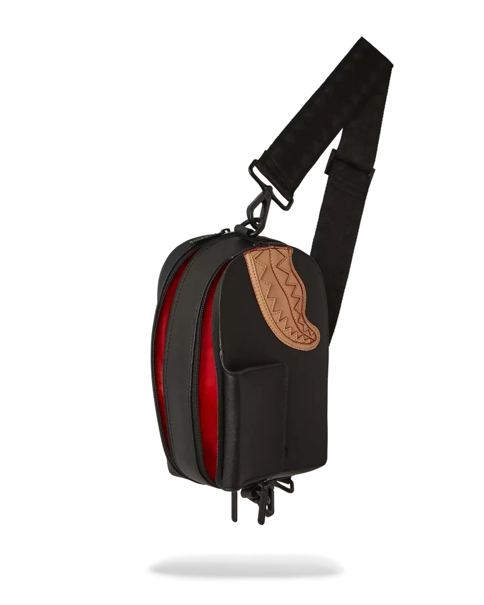Größe: H 20,3 cm x B 14 cm x T 7,6 cm 2 Reißverschlussfächer Kann vorne oder hinten getragen werden Verstellbarer vertikaler Gurt in Haifischmaul-Form