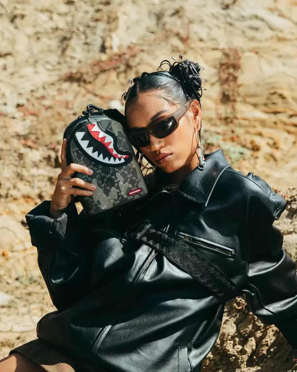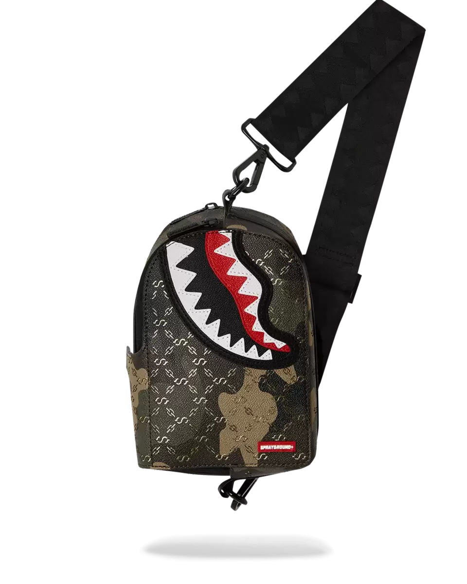 Größe: H 20,3 cm x B 14 cm x T 7,6 cm 2 Reißverschlussfächer Kann vorne oder hinten getragen werden Verstellbarer vertikaler Gurt in Haifischmaul-Form