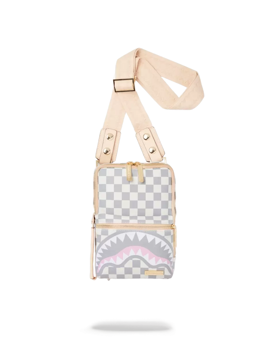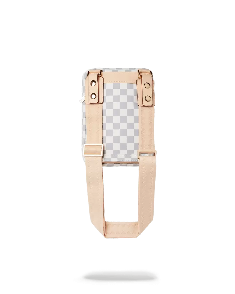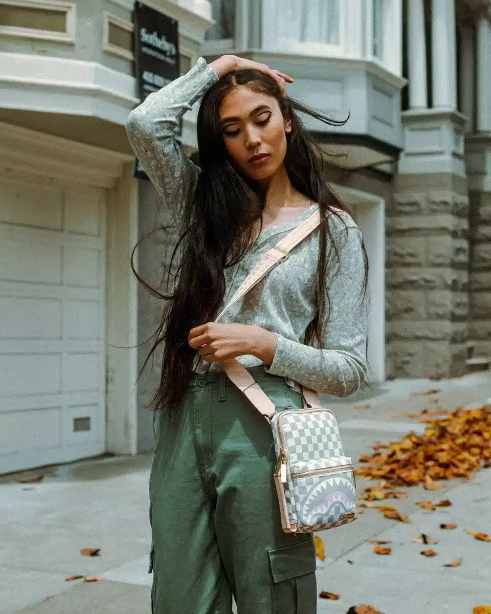 Abmessungen: 23 x 15 x 3 cm Vordertasche mit Reißverschluss Verstellbare, doppelseitige VSM-Riemen für individuelle Anpassung Reißverschlusstasche auf der Rückseite Seitlicher Tragegriff Goldfarbene Reißverschlüsse mit Metallbeschlägen Reißverschlussfach