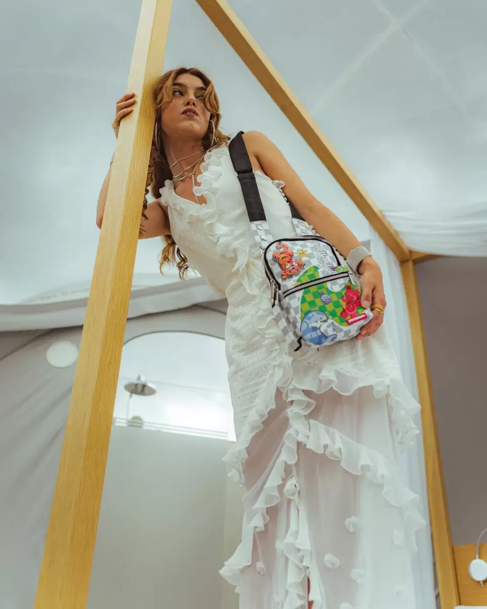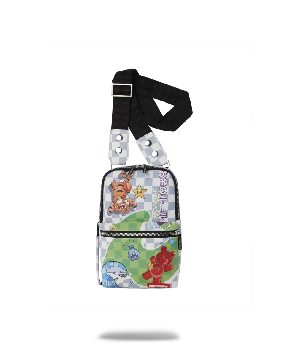 Abmessungen: 23 x 15 x 3 cm Vordertasche mit Reißverschluss Verstellbare, doppelseitige VSM-Riemen für individuelle Anpassung Reißverschlusstasche auf der Rückseite Seitlicher Tragegriff Goldfarbene Reißverschlüsse mit Metallbeschlägen Reißverschlussfach