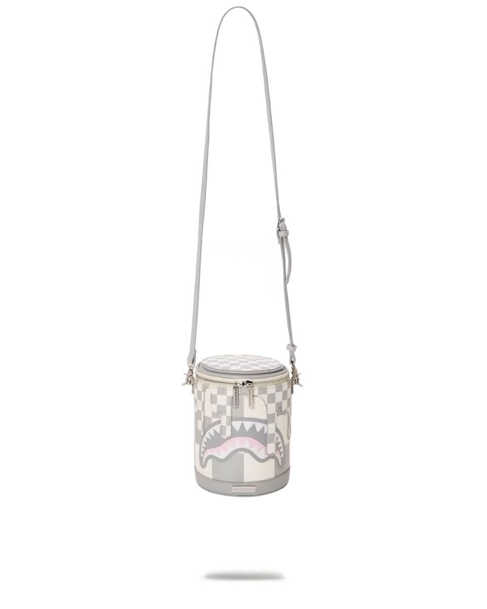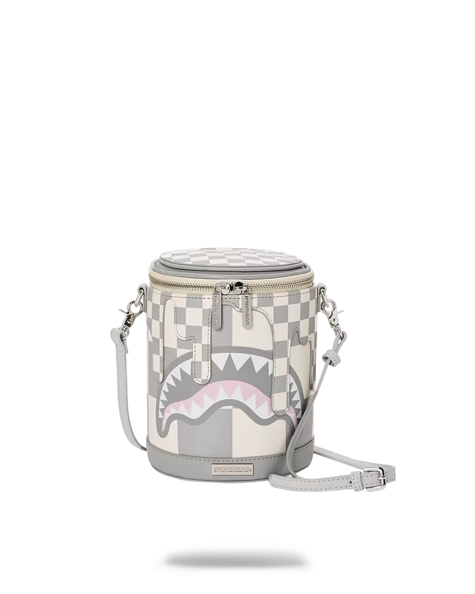 Umhängetasche mit verstellbarem Riemen in einer neuen, originellen Form, die an eine Farbdose erinnert