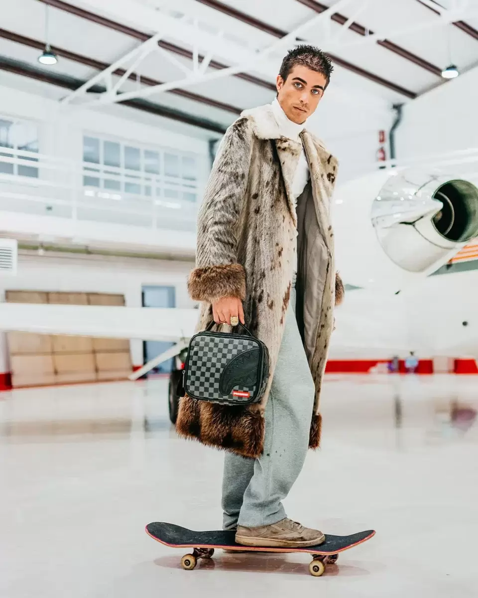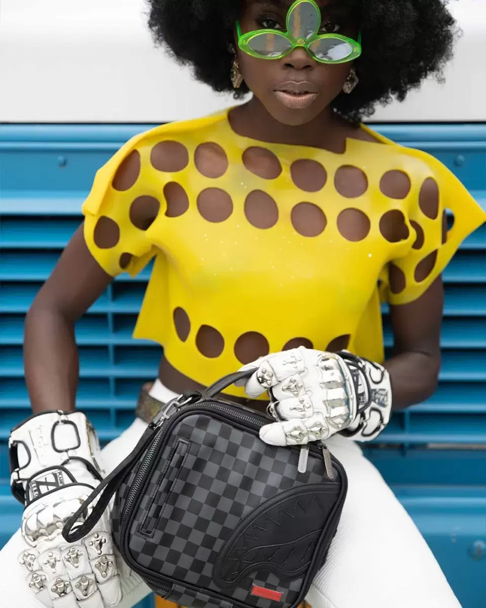 Abmessungen: 21,6 x 7,6 x 21,6 cm Doppelter Reißverschluss Tragegriff Abnehmbarer Seitengriff Goldfarbene Reißverschlüsse mit Metallbeschlägen Reißverschlusstasche
