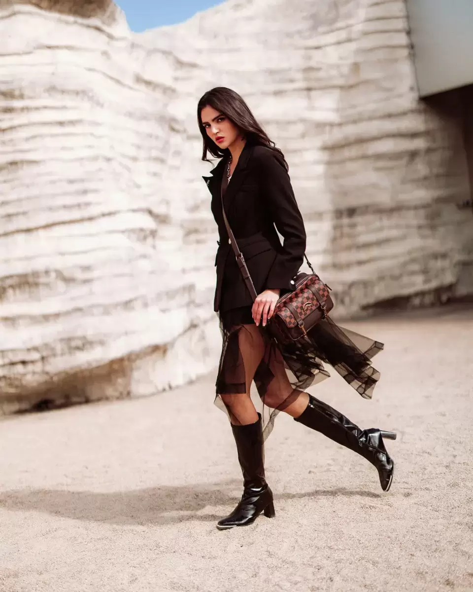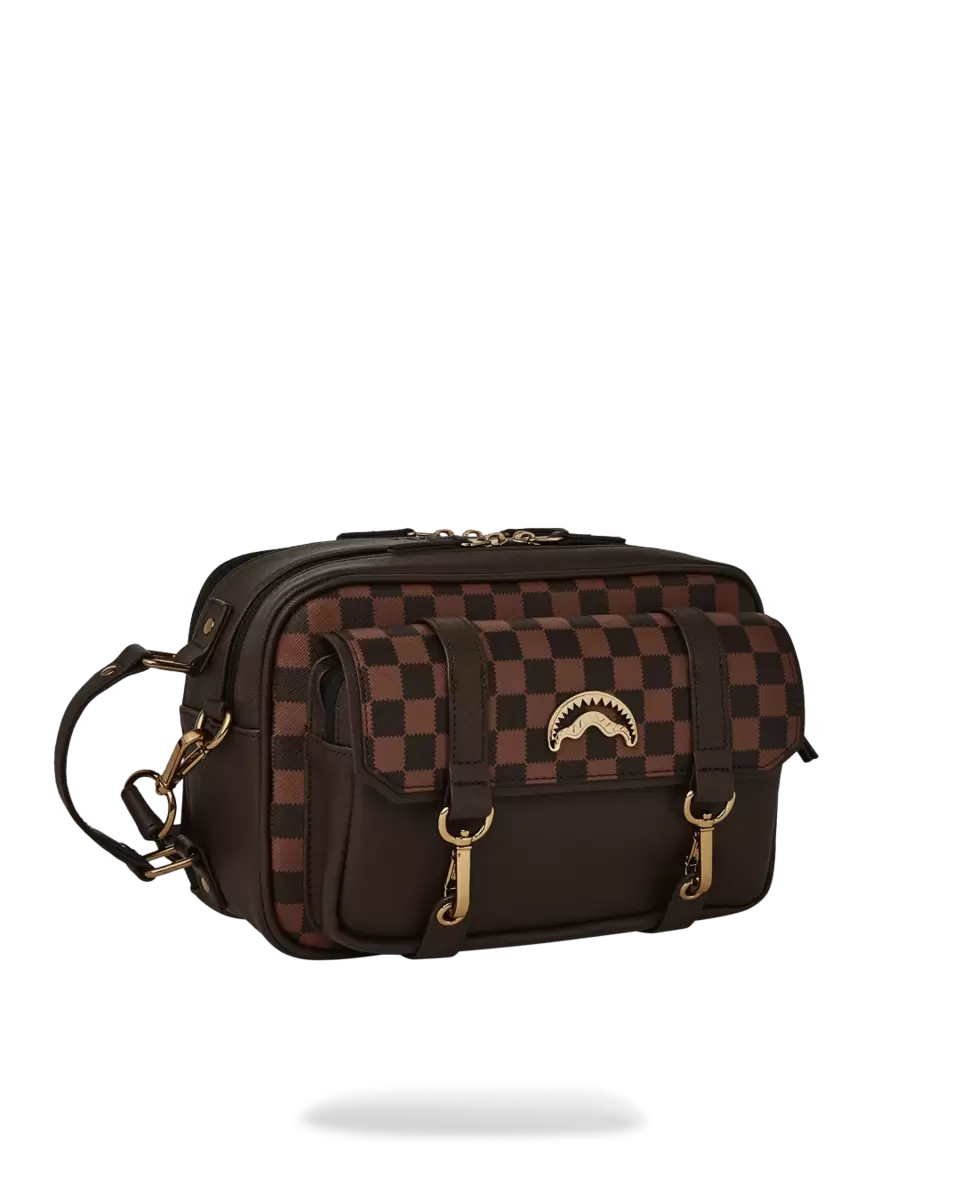 Verziert mit Cargotaschen in Haifischform, Ösen und Clips.