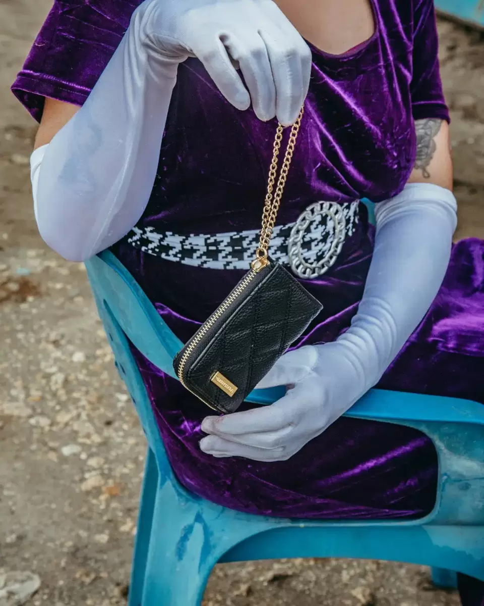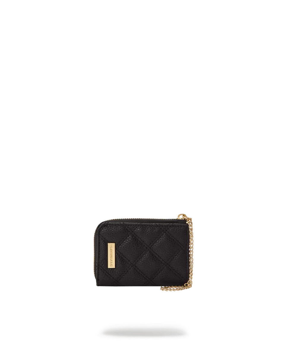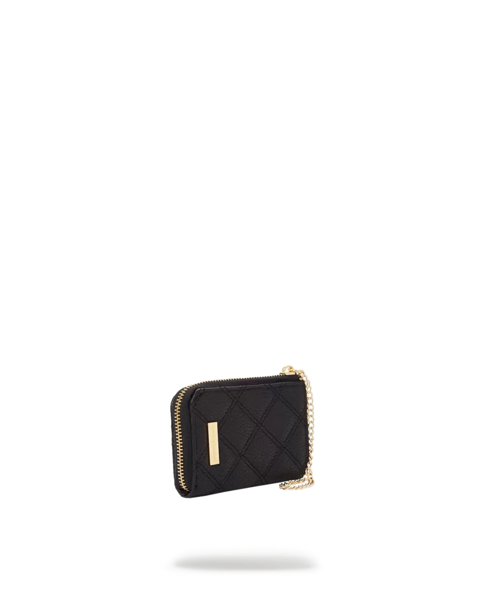 Butterweiches PU-Leder, gesteppt mit Doppelnadel-Rautenmuster, zarte Goldketten-Applikationen in Haifischmaul-Optik, goldfarbene Metallbeschläge, Geldbörse mit 4 Innentaschen für Bargeld