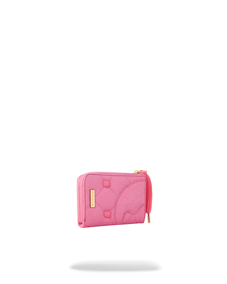 Rosa gesteppt mit Bärenkopf-Nieten. Rosa Emaille und goldfarbene Beschläge.
