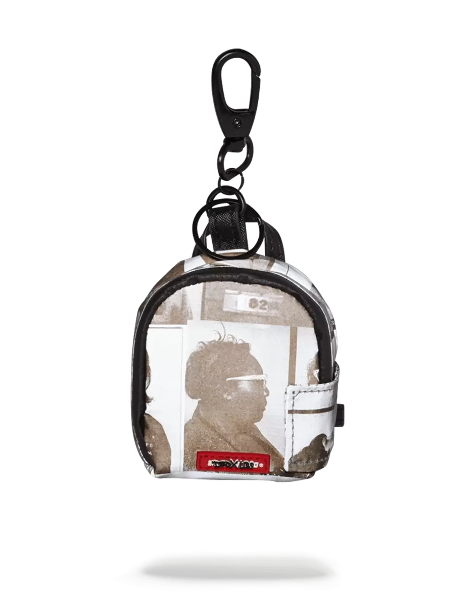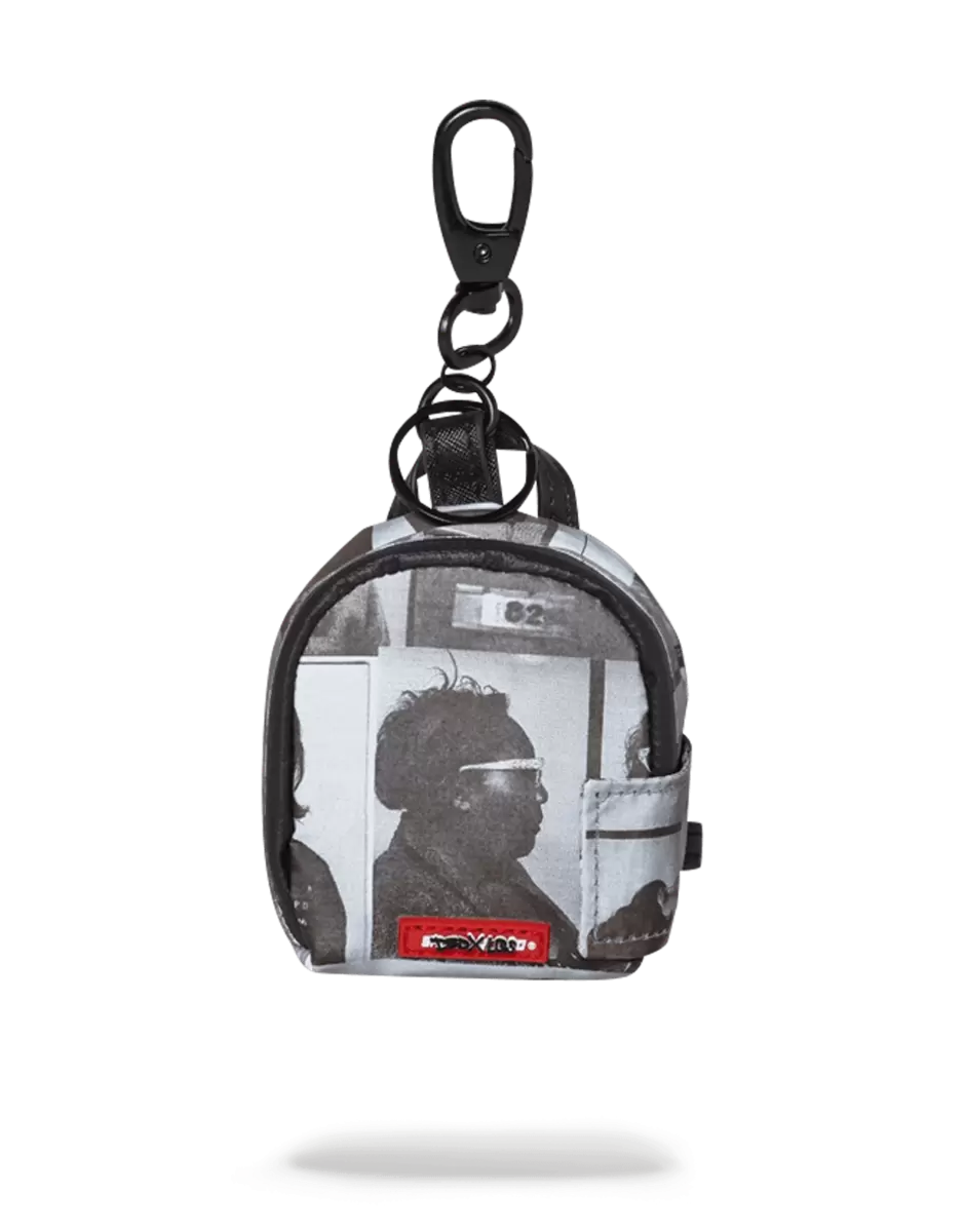 Reflektierender Rucksack-Schlüsselanhänger aus der LQS x DBD Kollaboration für die Scammer Kollektion. Mit schwarz-weißen Fotos von einflussreichen Frauen, die im Laufe der Geschichte wegen Verbrechen verurteilt wurden.