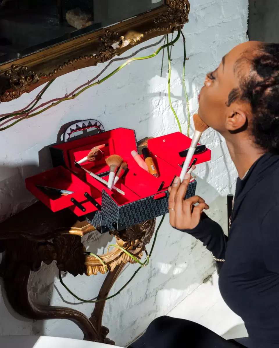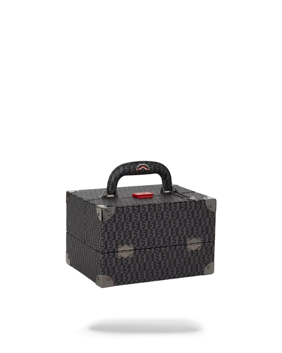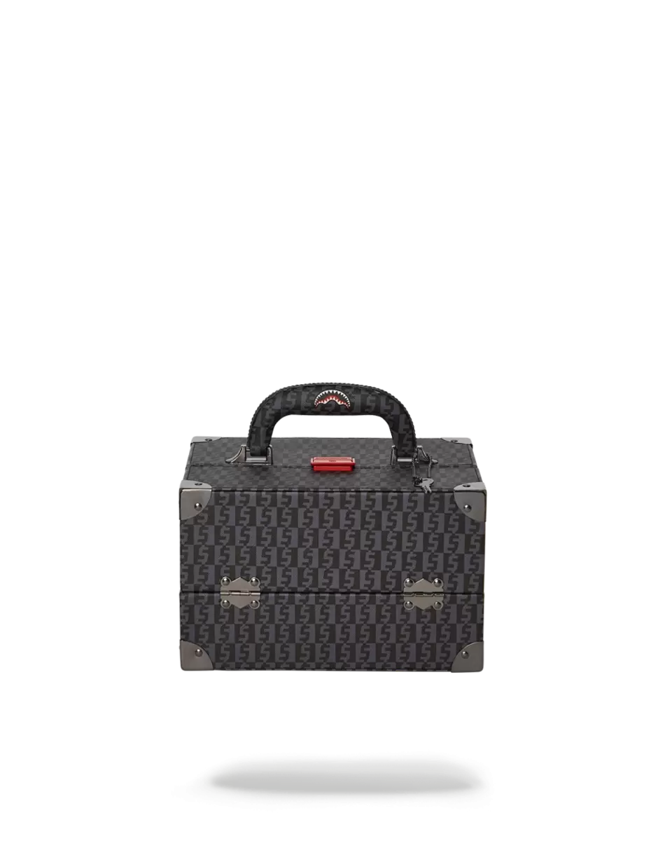 PRODUKTDETAILS 100% PU – geprägt mit Sprayground-Monogramm Größe 11, x 7, x 7, Rotes Veloursfutter, Ablagefächer, herausnehmbares Tablett, Innenspiegel.